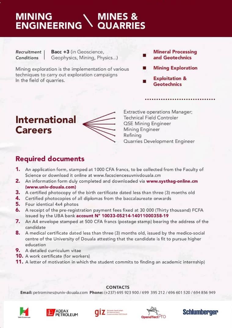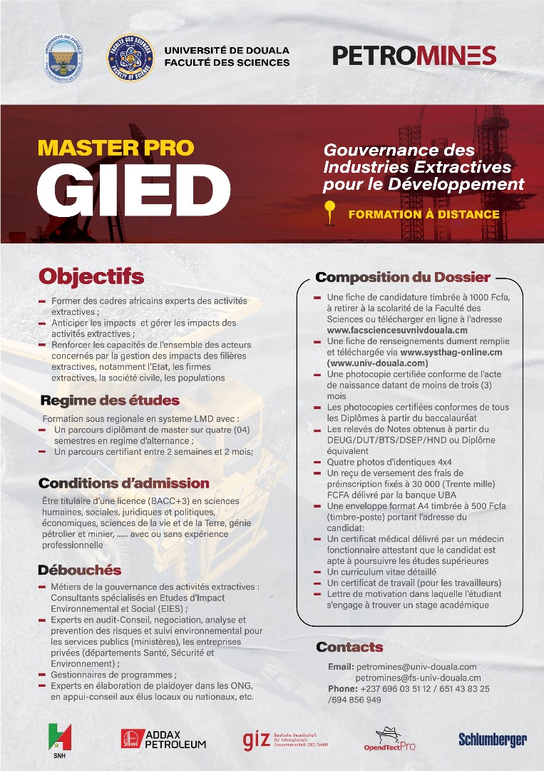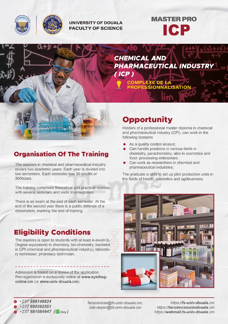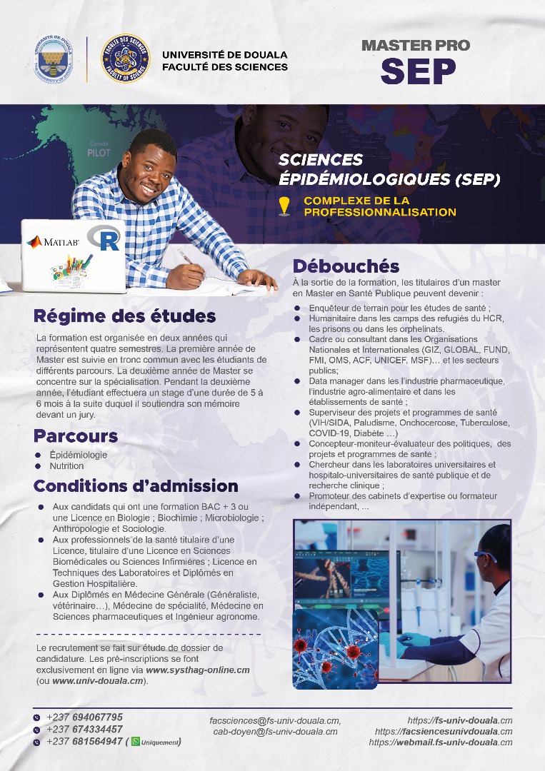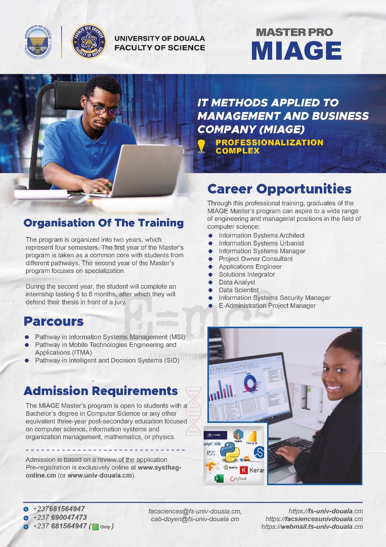 La faculté des sciences de l'Université de Douala, vous offre, en dehors de ses filières en formation initiale, les filières professionnelles ci-dessous.